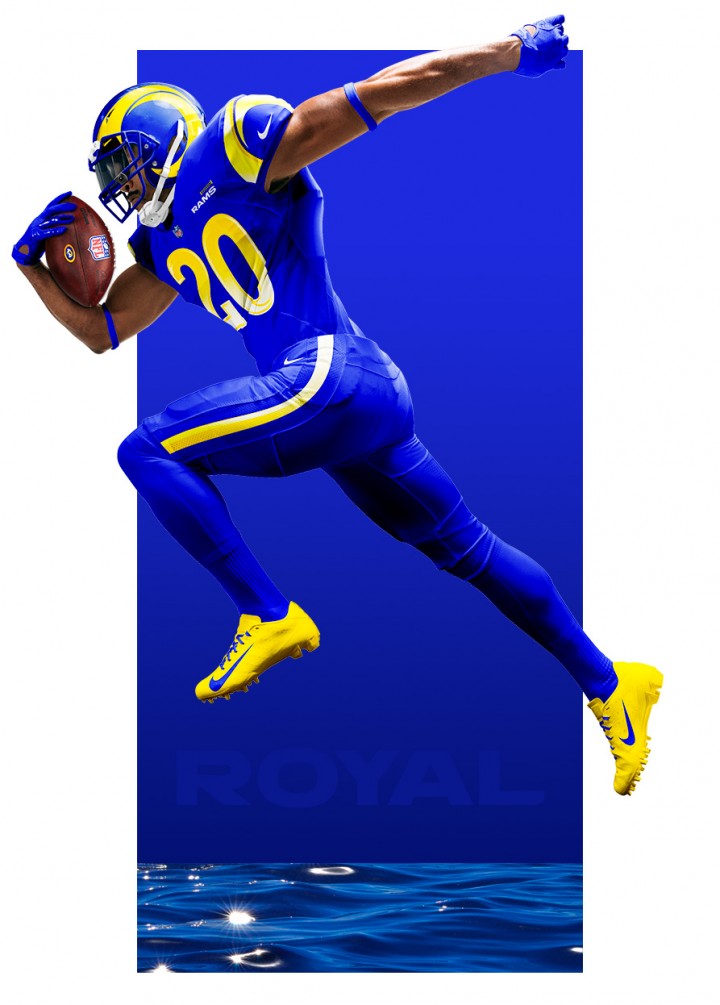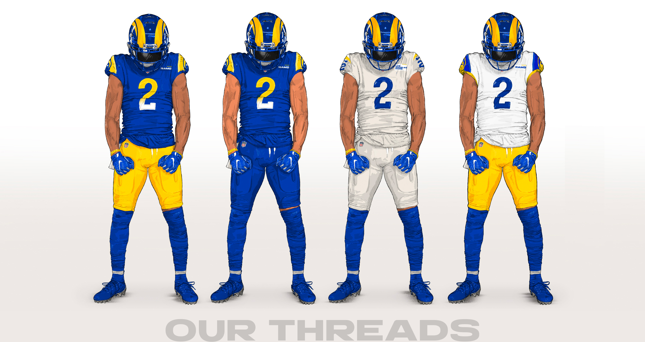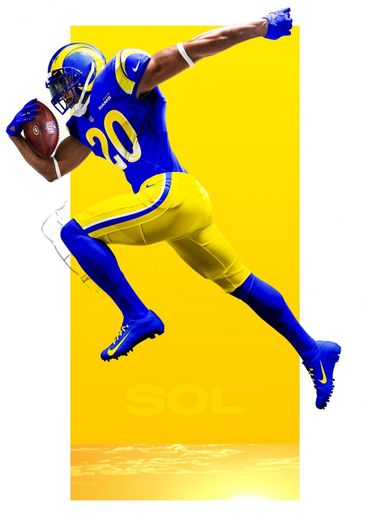 Die LA-Marke wurde mit dem Fokus auf das Horn, das mit LA verflochten ist, entworfen, um sicherzustellen, dass die Rams für immer mit der Stadt Los Angeles verbunden sind. Der Farbverlauf des Horns geht von einem weißen Horn zu einem leuchtenderen "Sol"-Horn über, als Hommage an die Entwicklung der Farbe der Hörner, die in der Vergangenheit die Helme der Rams geschmückt haben.