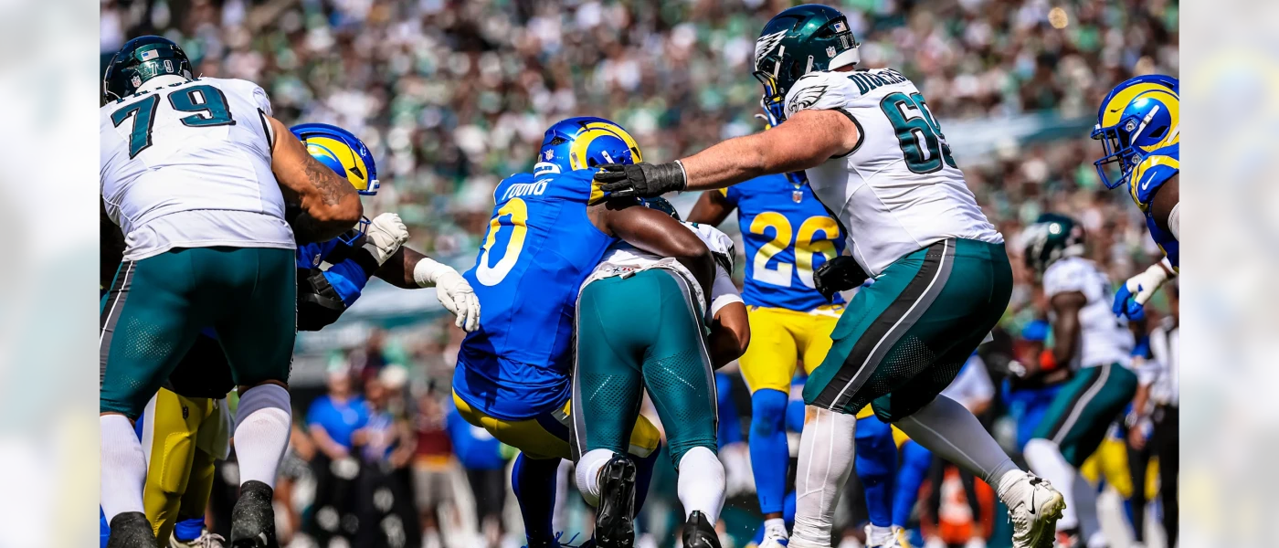 Das Spiel war inzwischen auf Messersschneide und im darauffolgenden Drive sollte mit einem Fieldgoal-Versuch der Vorsprung auf einen TD und einer Two Point Conversion ausgebaut werden. Das Fieldgoal wurde allerdings geblockt und das Momentum war komplett auf Seiten des Gastgebers. Die Offense war jetzt viel variabler und mit einer Mischung aus Pass, Laufspiel und QB Runs konnte man die Eagles leider nicht aufhalten. Smith machte den Touchdown und die Eagles führten tatsächlich mit 26-27. Unfassbar, aber noch nicht das Ende des Spiels. 1 Minute und 48 Sekunden blieben den Rams noch und da die Eagles die 2 Point nicht geschafft haben, hätte ein Fieldgoal zum Sieg gereicht. Mit schnellen Pässen marschierte man tatsächlich über das Feld. Eine nicht gegebene Flagge für Puca Nacua änderte am Ende auch nichts, die Rams bekommen ihre Chance auf das Fieldgoal. 44 Yard und die Spannung war kaum aufzuhalten. Karty trat an, schoss und die Eagles schafften es doch tatsächlich ein zweites Mal hintereinander, das Fieldgoal zu blocken. Geschockt und Frustriert wie man war, reagierte man auch nicht mehr schnell genug, sodass der Ball sogar noch von einem Defensive Lineman für einen Touchdown zurückgetragen wurde, was zum 26-33 Endstand führte!